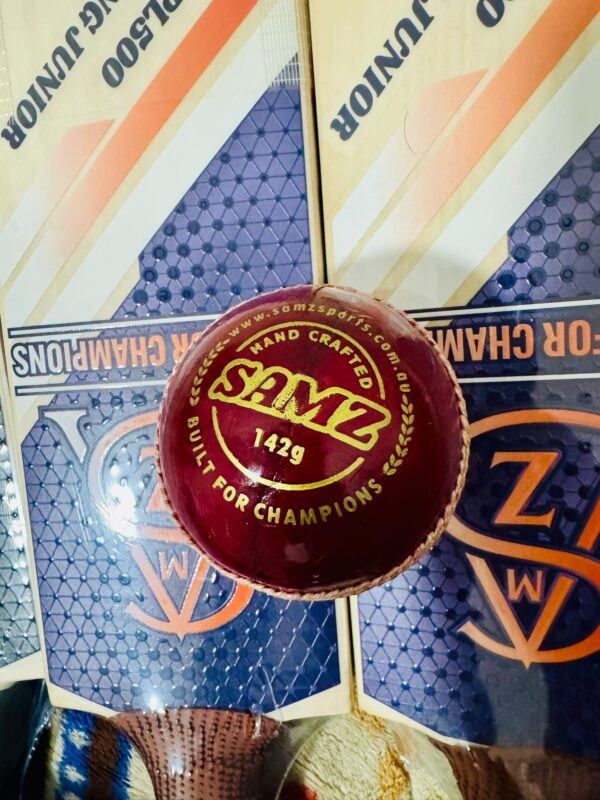 Premium 142g red leather ball — handcrafted for power, precision, and performance. Built for champions.